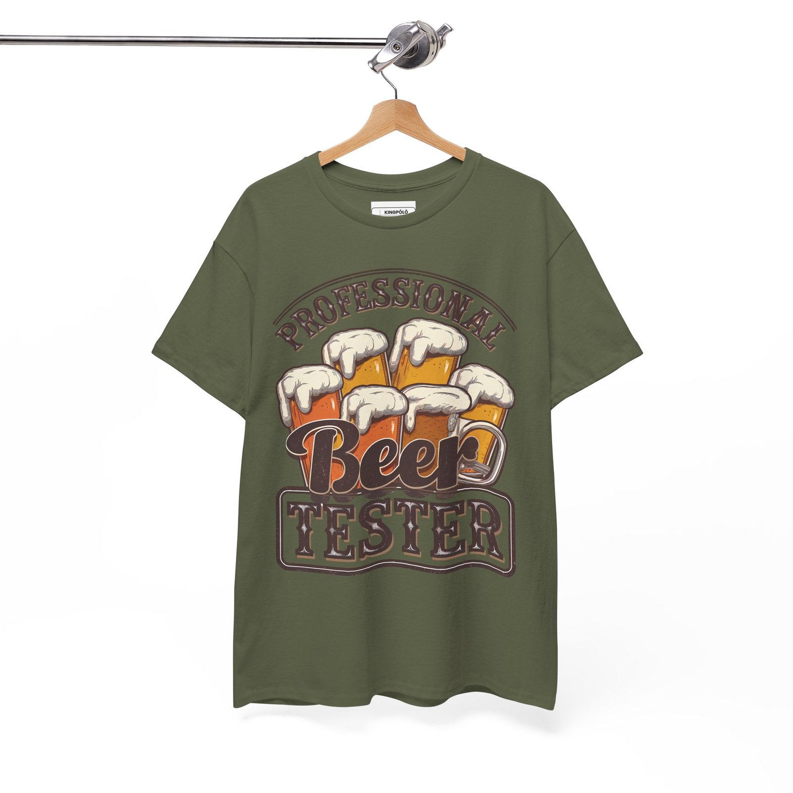Ez a póló minden sörimádó álma: a „Professional Beer Tester T-Shirt design egyenesen azt üzeni, amit minden haverod tud rólad – te bizony érted a szakmát.